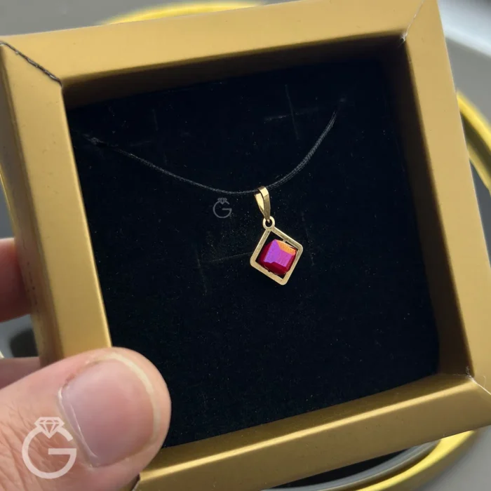 آویز طلای سواروسکی قرمز مربعی