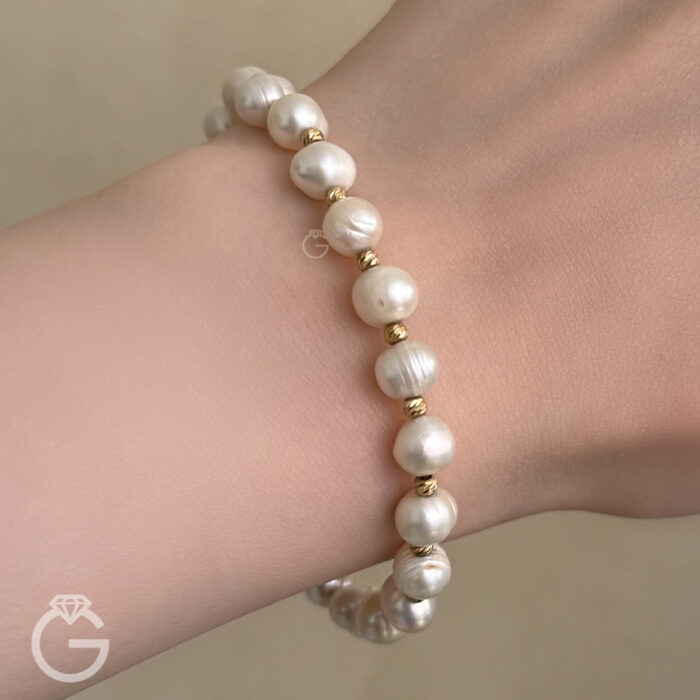 مدل دستبند : مروارید اصل یکسان درجه یک و گوی طلا