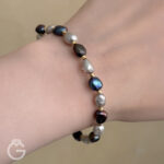 دستبند مروارید دو رنگ اصل و گوی طلا