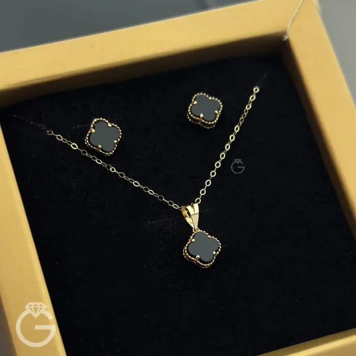آویز گل با سنگ اونیکس مشکی