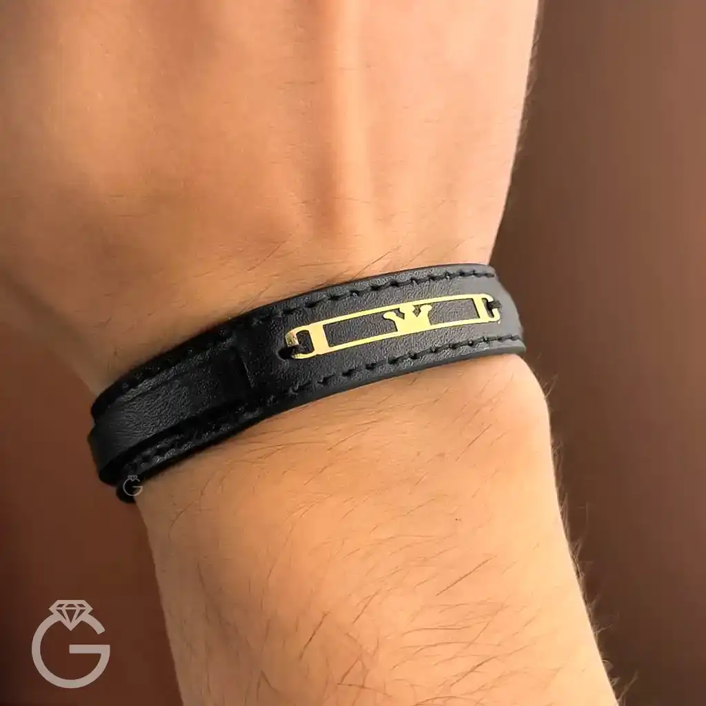 دستبند چرم و طلا طرح تاج 28114