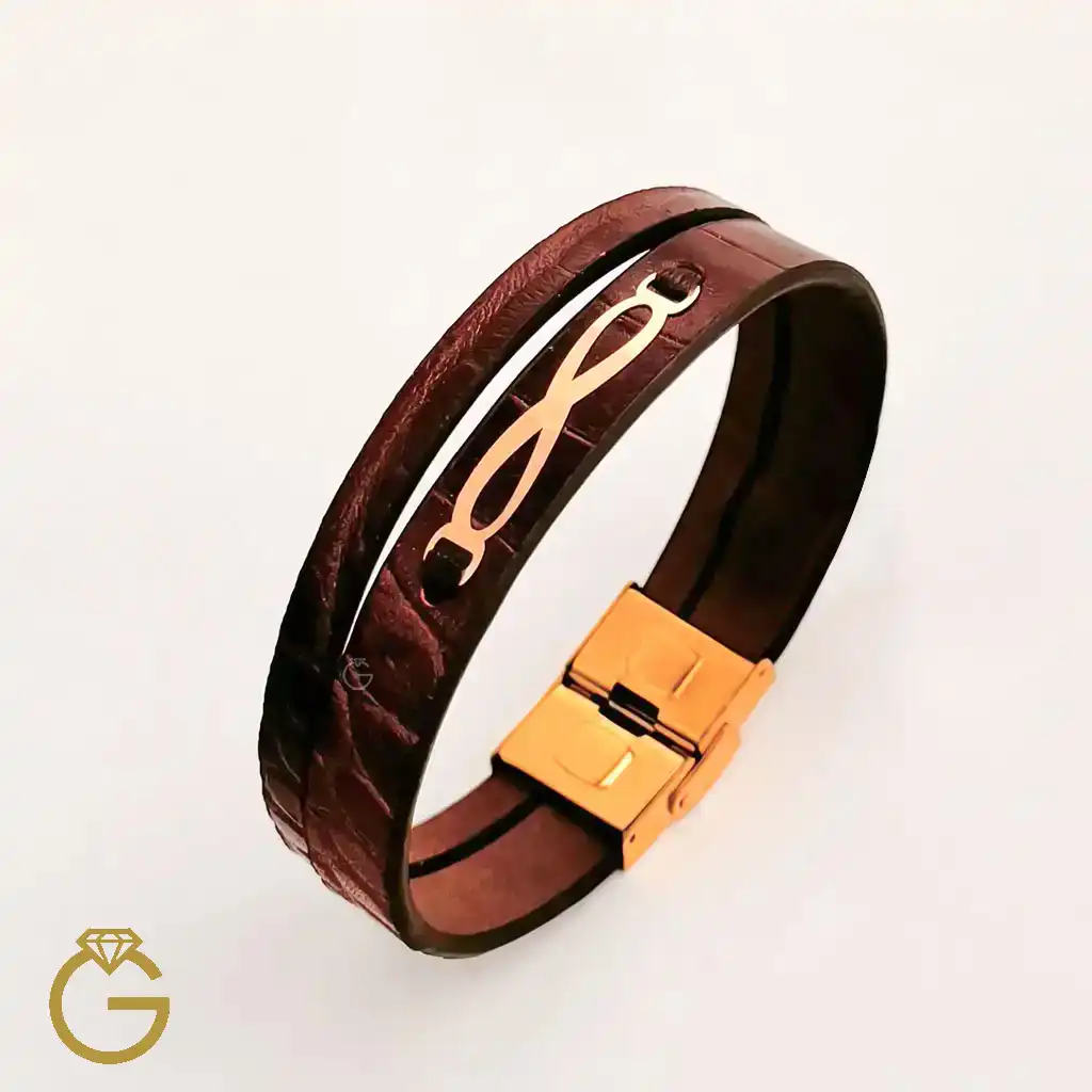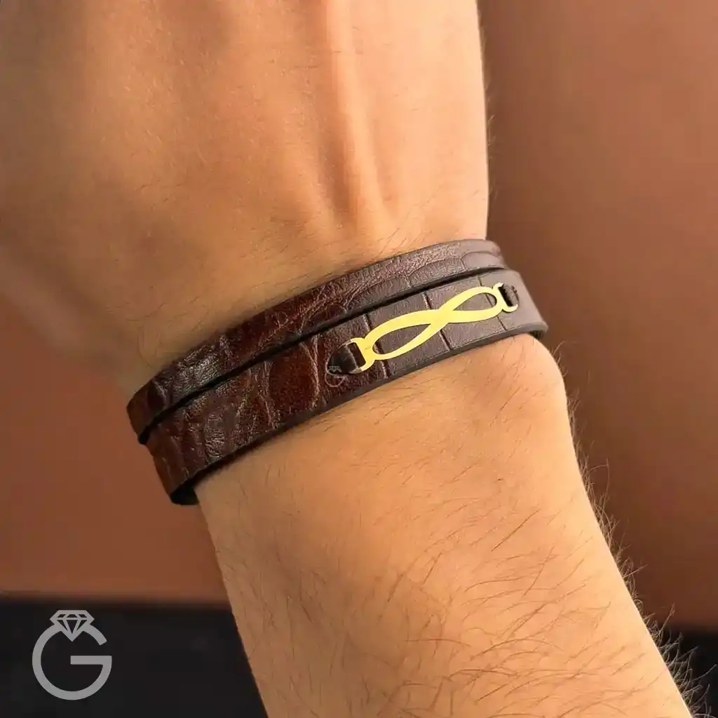 دستبند چرم و طلا طرح بینهایت کد 28133
