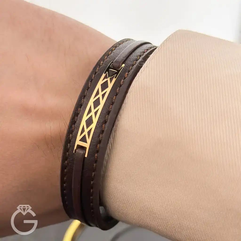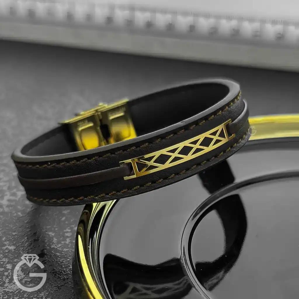 دستبند چرم و طلا کد 31736