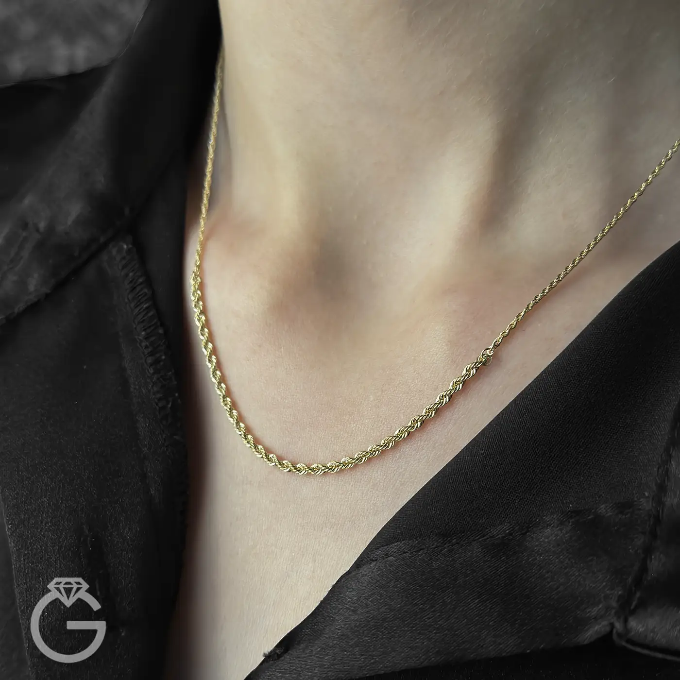 یکی از ویژگیهای مهم گردنبند طلای طنابی کونیک، طول استاندارد ۴۵ سانتیمتر آن است. این اندازه متناسب با گردن اکثر خانمها بوده و باعث میشود گردنبند بهخوبی روی استخوان ترقوه قرار بگیرد؛ جایی که بیشترین جلوه و زیبایی را خواهد داشت. این طول باعث میشود بتوانید گردنبند را هم بهتنهایی استفاده کنید و هم همراه با سایر آویزها یا گردنبندهای ظریف دیگر ست کنید.