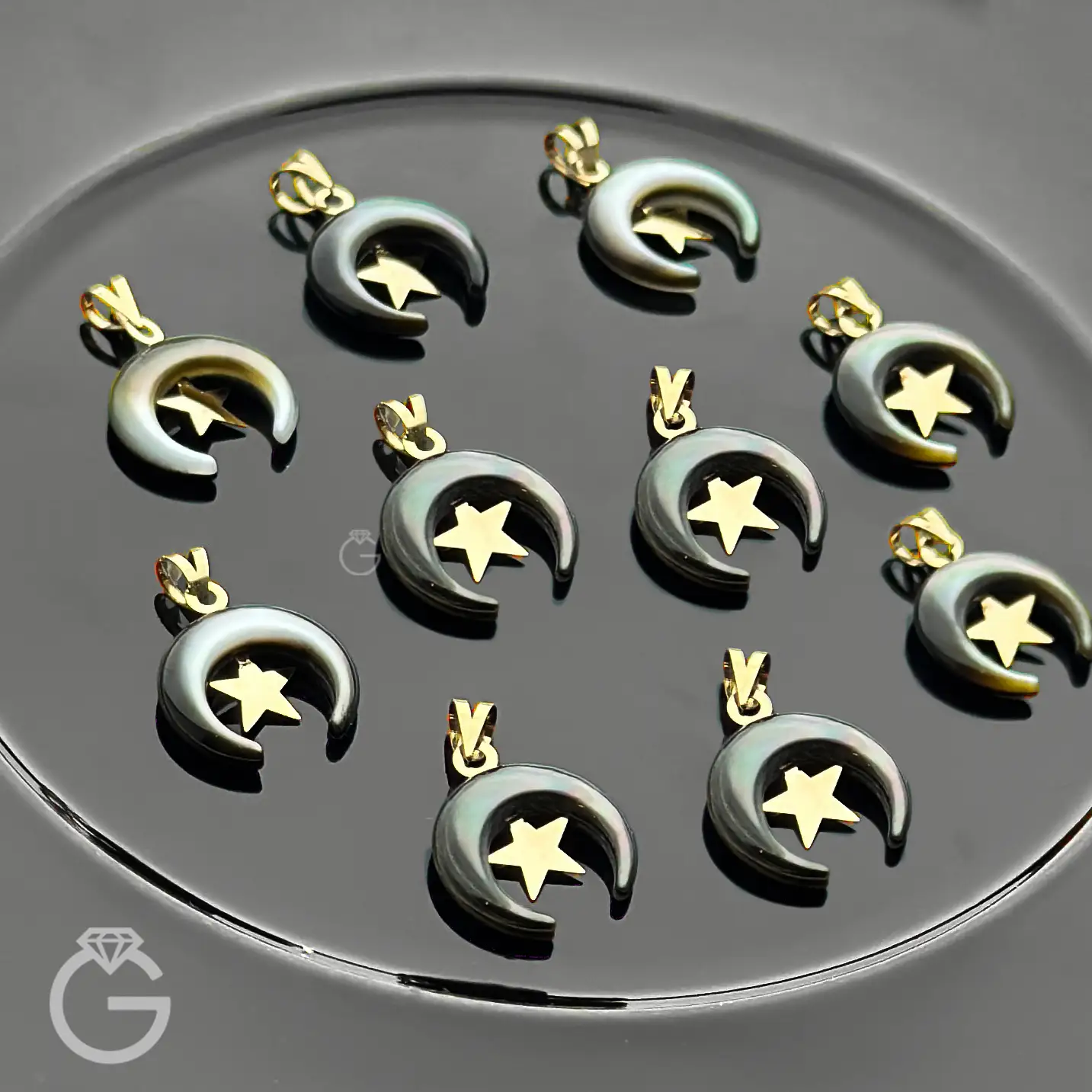 نوع محصول: آویز طلای ماه و ستاره صدفی مشکی