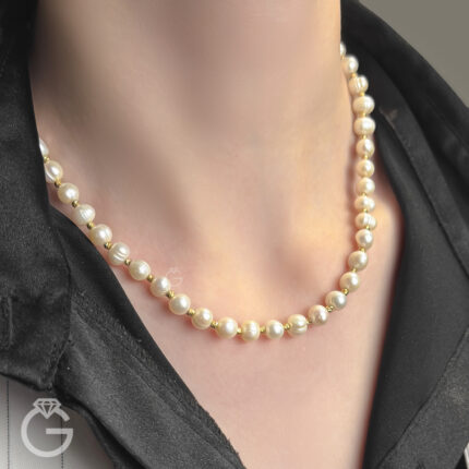 گردنبند مروارید اصل و گوی البرنادو طلا