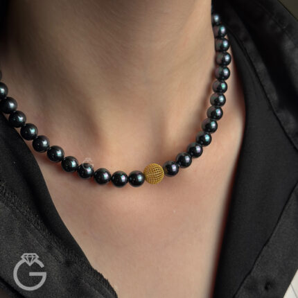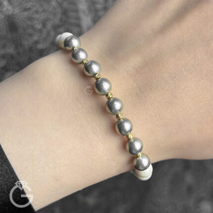 دستبند مروارید دو رنگ اصل و گوی طلا