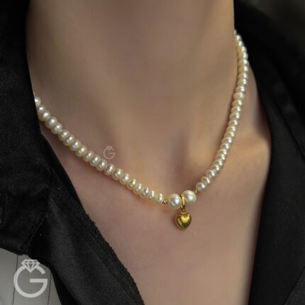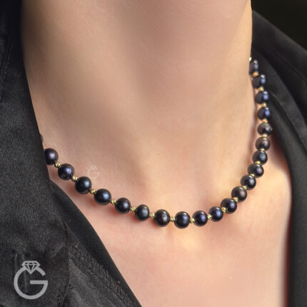 گردنبند طلا مروارید و کوارتز هفت رنگ اصل